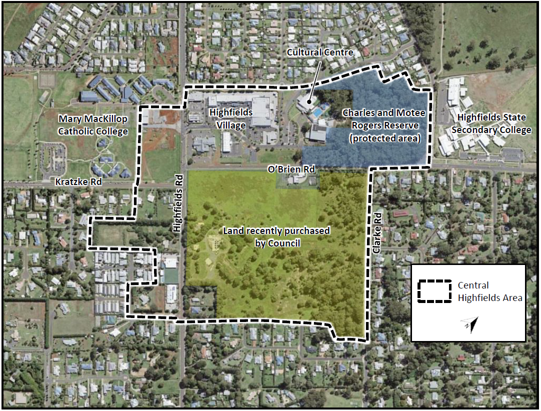 In late 2017, Council purchased a 45-hectare area of land at the corner of Highfields and O’Brien Roads to provide a future town centre for Highfields. The new town centre will offer a wide range of goods, services and accommodation options to cater for anticipated growth and the changing needs of the community.